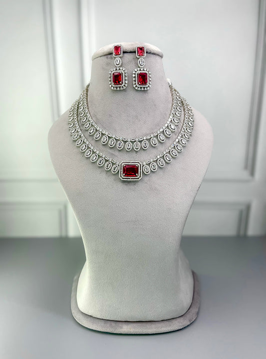 Layla Ruby Red Layered AD Necklace Set