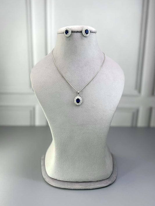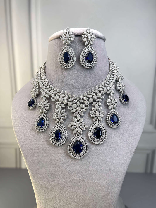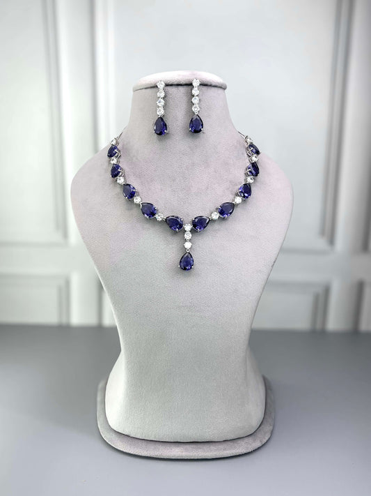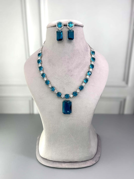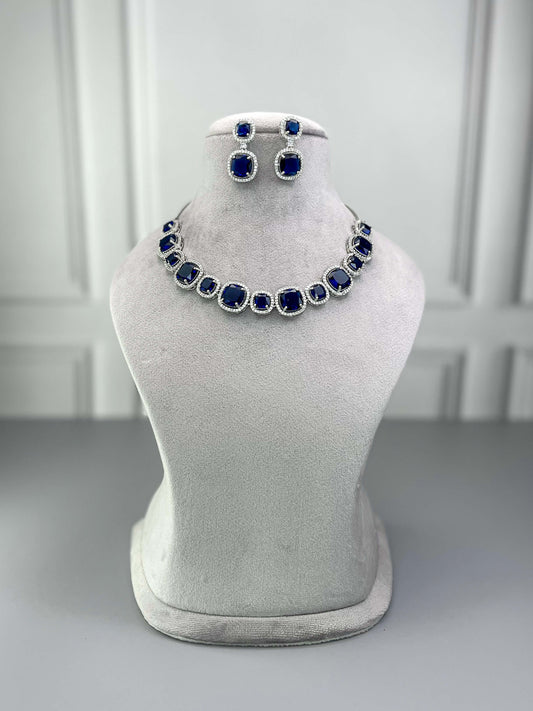 Victoria Sapphire Blue AD Necklace Set