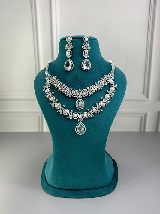 Eleanor Layered Pearl White AD Necklace Set