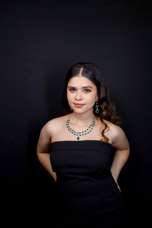 Elena Emerald Green Double Layered Necklace Set